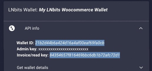 From the sidebar, take a note of the Wallet ID and Invoice/read key. You will need this later